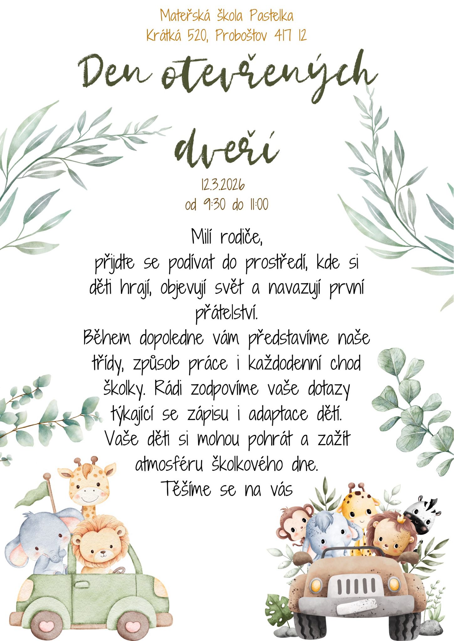 Den otevřených dveří Vážení rodiče a zákonní zástupci dětí, na přiloženém letáku naleznete informace o dni otevřených dveří, který pro vás pořádáme. Kolektiv MŠ Pastelka Napsala Karolína Jakoubková 5. Března 21:06